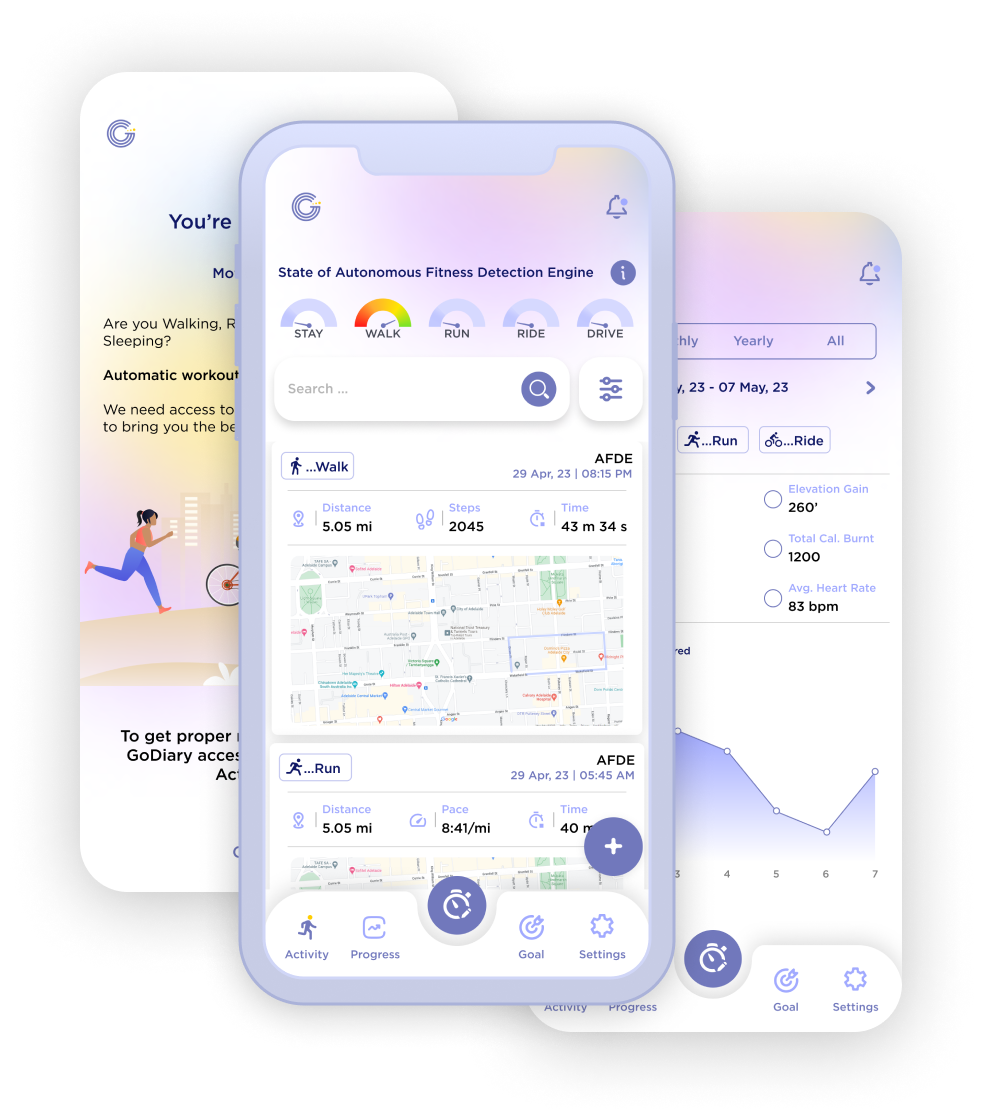 The "Autonomous Fitness Detection Engine" is the proprietary code, that GoDiary has developed, which allows for battery efficient tracking of your workouts. We are constantly working to improve our technology to provide the most accurate and battery efficient experience for our users. No more thinking only doing. Get out there and give us a try!